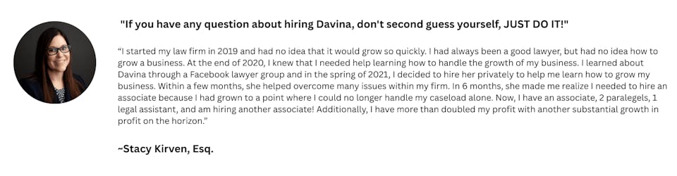 I started out just like you – $80,000 in student loans, zero experience, and a belief that the only way to scale my law firm was a relentless hustle. It wasn’t long before I found myself overworked, overwhelmed, and feeling like the stress of trying to be everything to everyone was going to be my undoing.